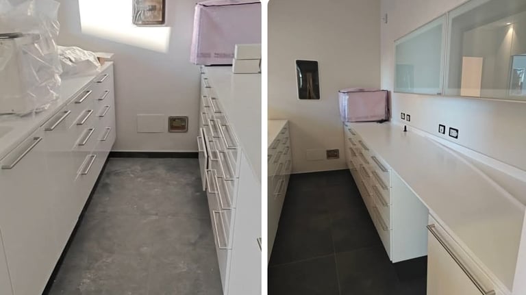 Un servizio di pulizie Post ristrutturazione comincia dai pavimenti e permette di eliminare le macchie più difficili, comprese quelle di calce, vernice e grasso. Questo intervento, che include la lucidatura a specchio per riportare le piastrelle alla finitura di fabbrica, è fondamentale per evitare che i detriti possano rovinare le superfici e causare danni permanenti.